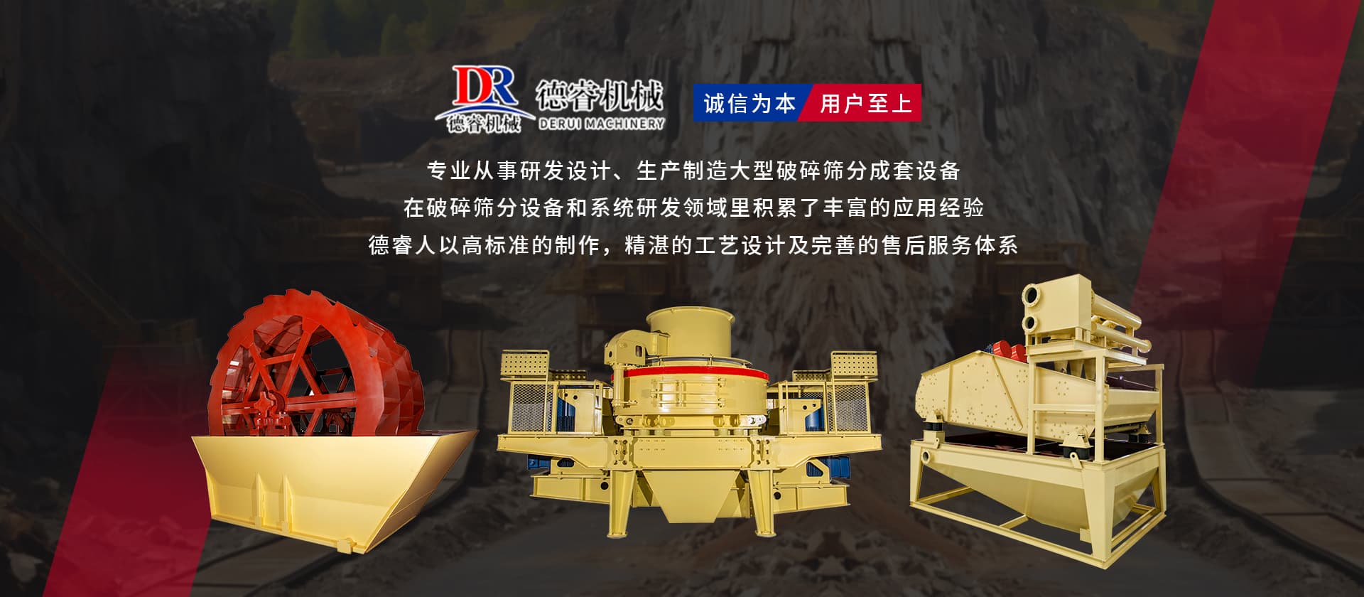 德睿重型機械是從事研發(fā)設計、生產(chǎn)制造大型破碎篩分成套設備的現(xiàn)代高新技術企業(yè)集團,公司總部座落于廣東工業(yè)重鎮(zhèn)、韶關市湞江區(qū)工業(yè)園,有現(xiàn)代化辦工場地、研發(fā)中心和標準化廠房,多種大型機械加工設備10余套,現(xiàn)公司技術人員40余名。 公司在主要城市均設有辦事處,配有豐富實戰(zhàn)經(jīng)驗的設計工程師,方便為各地客戶現(xiàn)場分析、配置生產(chǎn)線并提供及時、周到的售后服務。 目前產(chǎn)品已覆蓋東南亞、中東、非州、歐州等多個國家和地區(qū),并獲得客戶的好評。公司已成為主要的專業(yè)礦山設備,工業(yè)磨粉、碎石制砂設備的生產(chǎn)和出口基地之一。 “誠信為本,用戶至上”德睿人以高標準的制作,精湛的工藝設計及完善的售后服務體系在破碎篩分設備和系統(tǒng)研發(fā)領域里積累了豐富的應用經(jīng)驗。借助在破碎行業(yè)的豐富經(jīng)驗,公司可向客戶提供碎石制砂生產(chǎn)線設計、安裝、調試等交鑰匙工程,同時承接破碎系統(tǒng)的爆破、裝運、破碎等生產(chǎn)運行總承包。